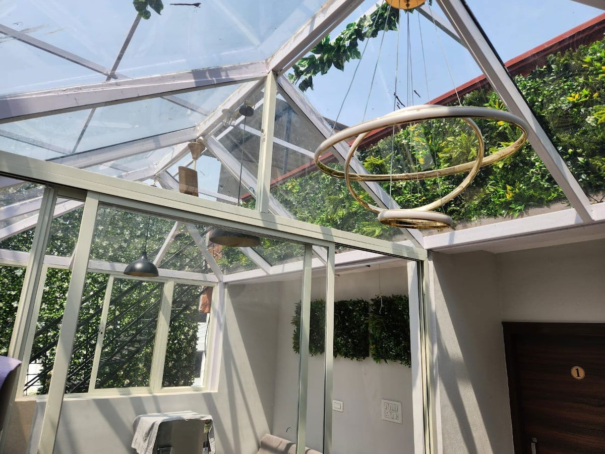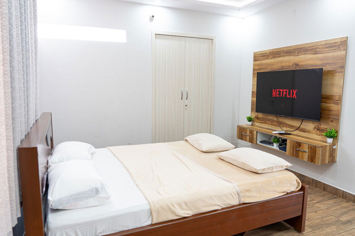 Relax with the whole family at this peaceful place to stay, and yes it is couple friendly place. Beautiful penthouse with one bedroom and free parking. overlooking the serene neighbourhood. Stay with friends and family for a sky light experience. Also newly added modular kitchen and state of the art interiors. furthermore includes a designated work area. 50 inch TV with OTT subscriptions and TV channels.